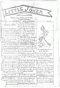 Shortly after he arrived in Jacksboro, McConnell and other soldiers published a weekly newspaper, LITTLE JOKER, on foolscap. The paper circulated among the soldiers at Jacksboro. The Jacksboro post was temporarily abandoned by the military, and the LITTLE JOKER “was ignominiously packed on a Quartermaster’s house and moved to Fort Belknap.”