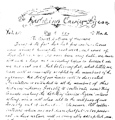 “The Knowledge Seeker” was published by the Young Men; “The Young Ladies Thoughts” and “The Evening Star” were published by the Young Ladies. Apparently, “The Evening Star” succeeded “The Knowledge Seeker.” These papers appeared under various editors, since officers in these organizations changed hands regularly.