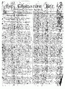 The date hints that it may be a spoof. Other indicators, such as the subscription rates on page 3 (“One year: cord of wood; six months: bushel of beans; three months: slab of bacon; one month: shave & hair cut”) and the motto,” Don’t kick if you happen to get stung,” also point toward an “April Fool’s” edition paper.