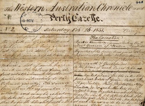 The only known newspaper to precede it in the colony was The Fremantle Journal and General Advertiser, of which the Battye Library holds edition number 3, published on 27 February 1830 (see reference above in this Pending section)